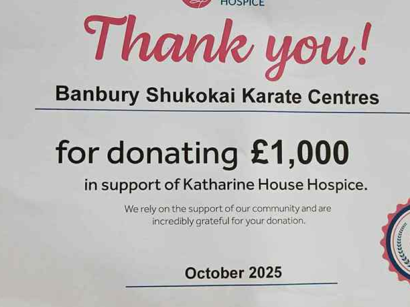 BANBURY KARATE CENTRES charity karate course September 2025 where we successfully raised £1000.00 for the local Hospice.